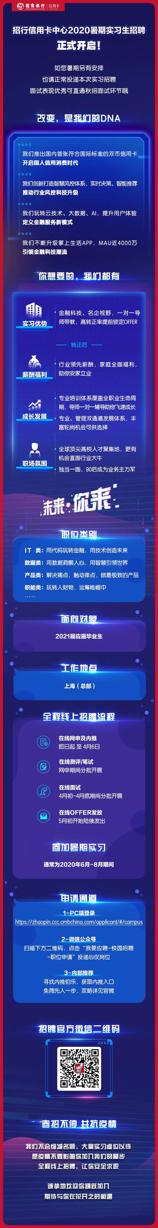 2020年招商銀行信用卡中心暑期實習校園招聘啟事