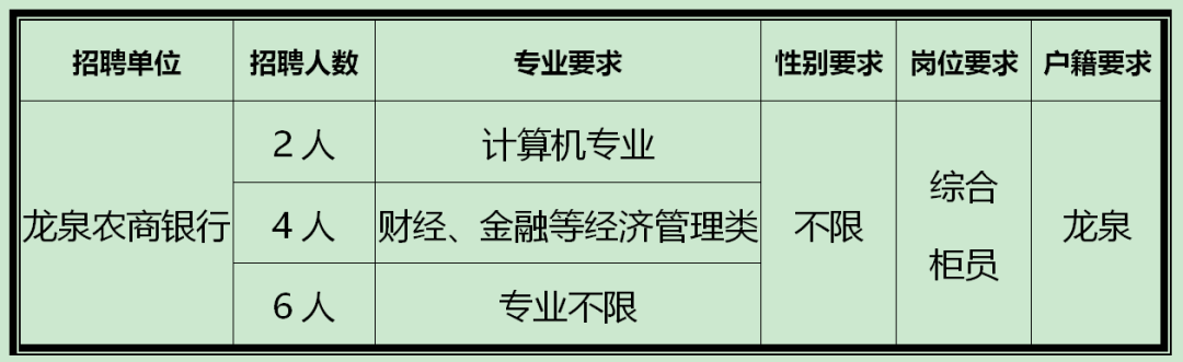 2020年龍泉農(nóng)商銀行春季招聘公告