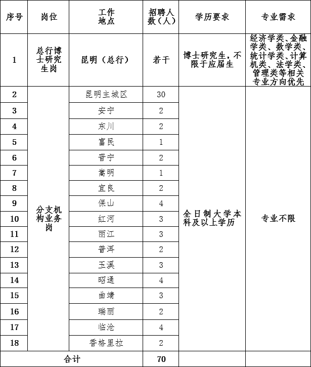 5.良好的外語溝通能力(昆明郊縣支行、地州分行不做此要求),具體要求為: