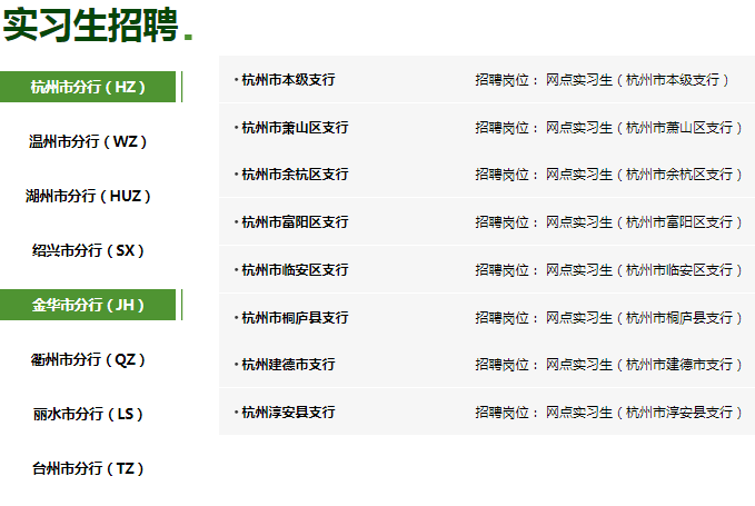 2020年中國郵政儲蓄銀行浙江省分行實習生招聘公告