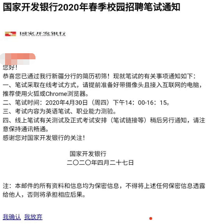 2020國家開發銀行新疆分行春季校園招聘筆試通知