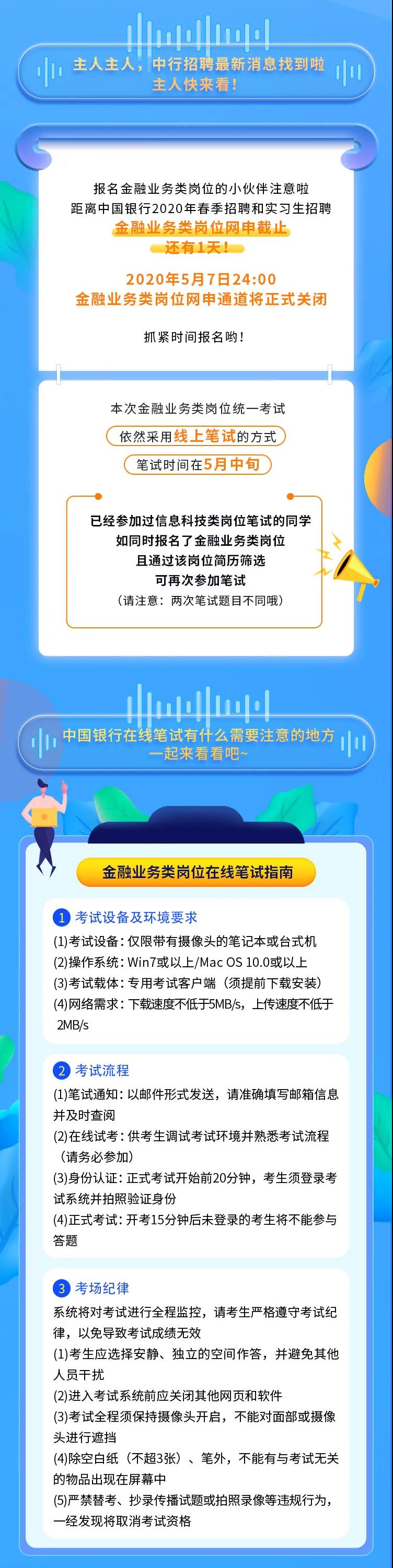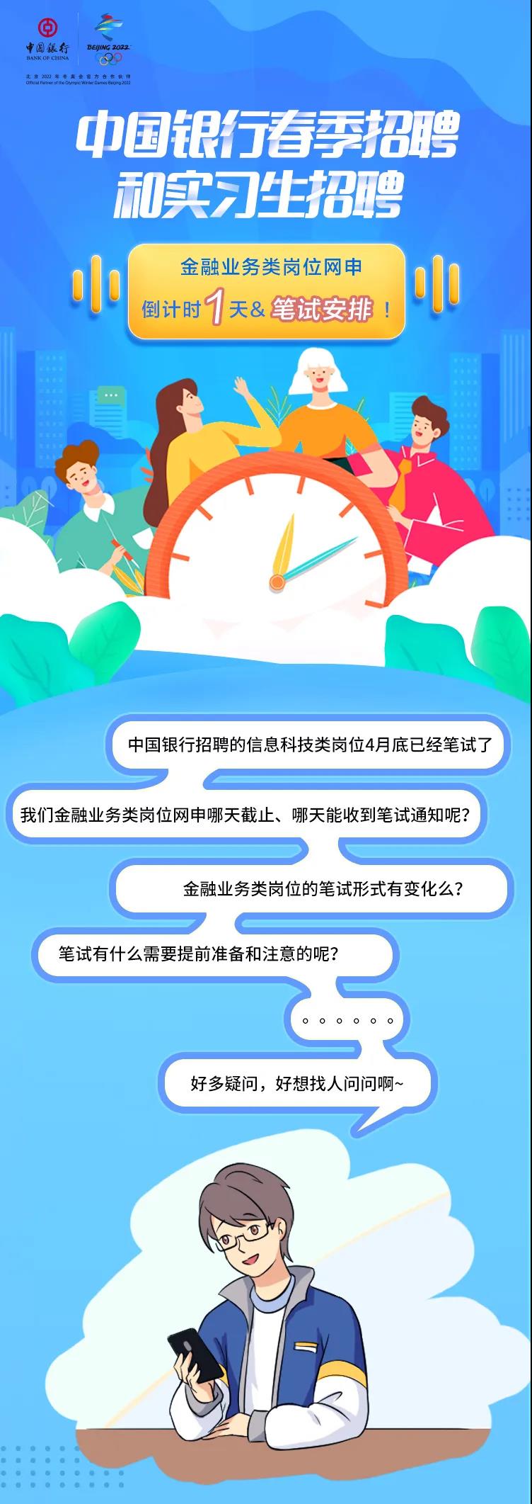 2020年中國銀行春季招聘和實習生招聘金融業務類崗位網申倒計時1天&筆試安排