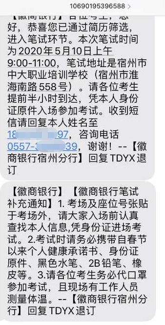 2020年徽商銀行宿州分行春季校園招聘筆試通知