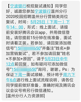 2020年寧波銀行溫州分行春季校園招聘營銷類崗位復試通知公告