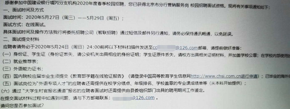 2020年中國建設銀行北京分行營銷服務崗春季校園招聘面試通知公告