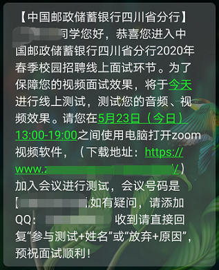 2020年中國郵政儲蓄銀行四川省分行春季校園招聘線上面試通知公告