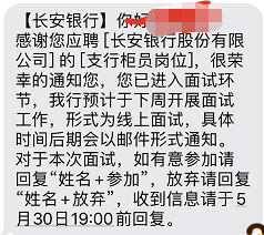2020年長(zhǎng)安銀行春季校招支行柜員崗招聘線上面試通知