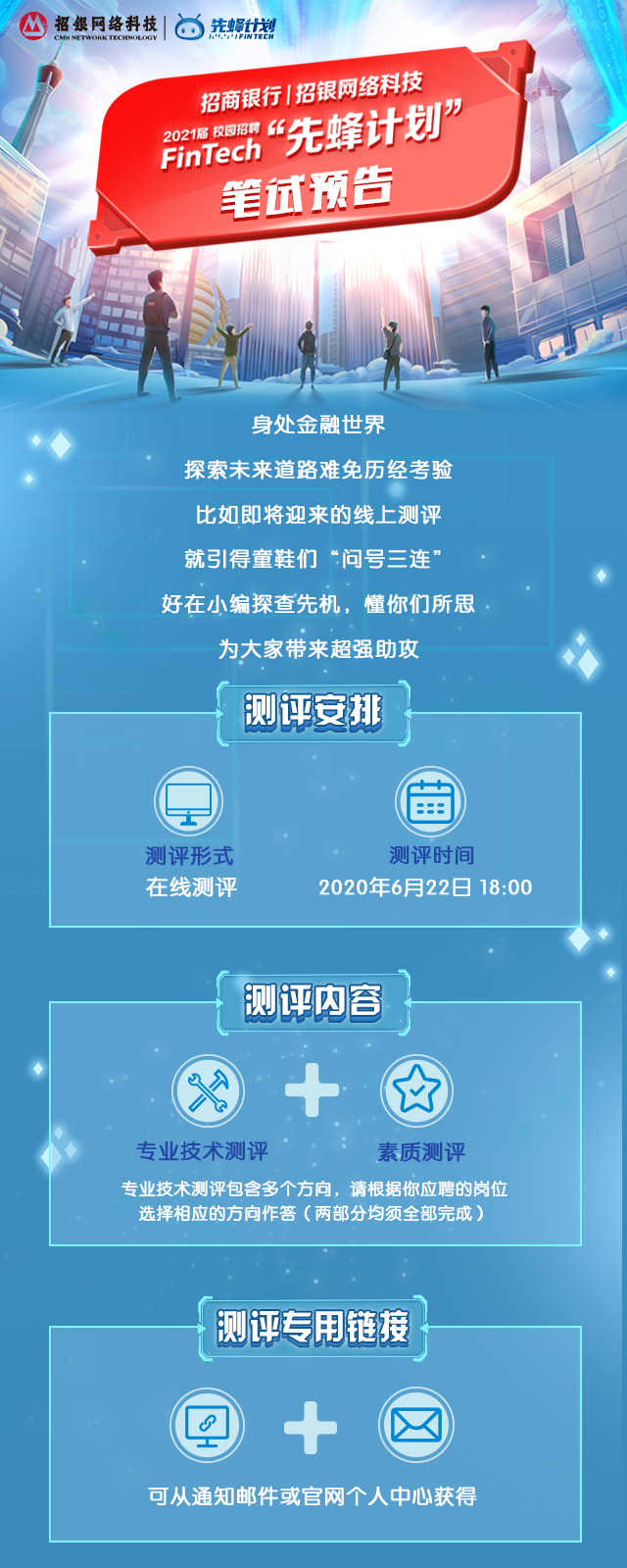 2021屆招商銀行網(wǎng)絡(luò)科技FinTech“先鋒計(jì)劃”在線筆試測(cè)評(píng)預(yù)告