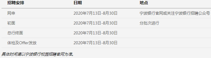 網上報名:應聘者請于2020年8月30日24點前登錄寧波銀行校園招聘官網提交簡歷;