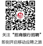 官方微信:掃描下方二維碼,關(guān)注“招商銀行招聘”微信公眾號(hào)平臺(tái),獲取最新的校園招聘信息,點(diǎn)擊“校園招聘”,申請(qǐng)感興趣的職位,投遞簡(jiǎn)歷!