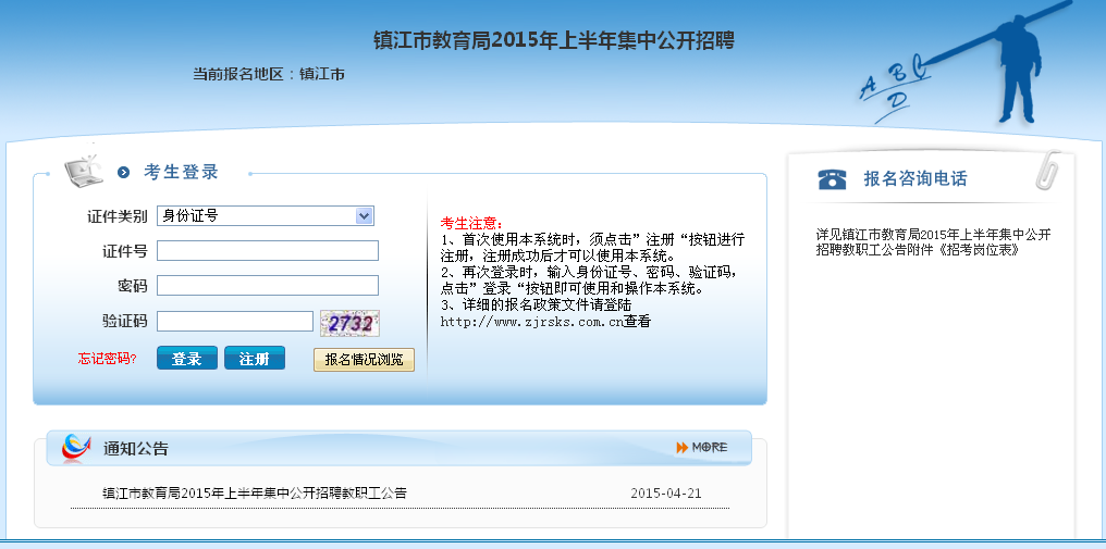 鎮江市教育局2015年上半年集中公開招聘網上報名入口