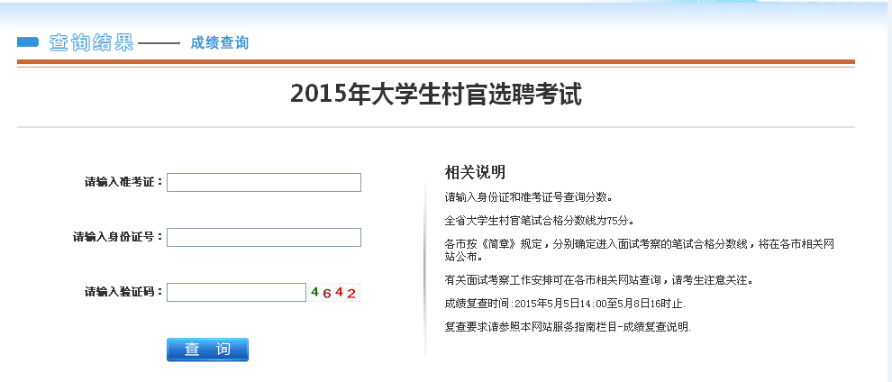 2015年大學生村官選聘考試成績查詢