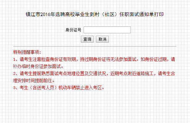 2016年鎮(zhèn)江市選聘高校畢業(yè)生到村(社區(qū))任職面試通知單打印