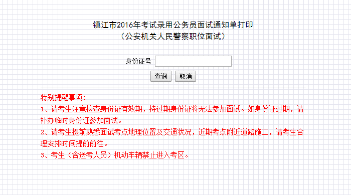 2016年鎮江市考試錄用公務員面試通知單打印(公安機關人民警察職位面試)