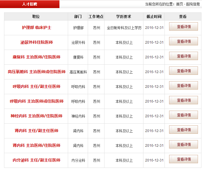 詳見招聘職位表(蘇州高新區(qū)人民醫(yī)院)