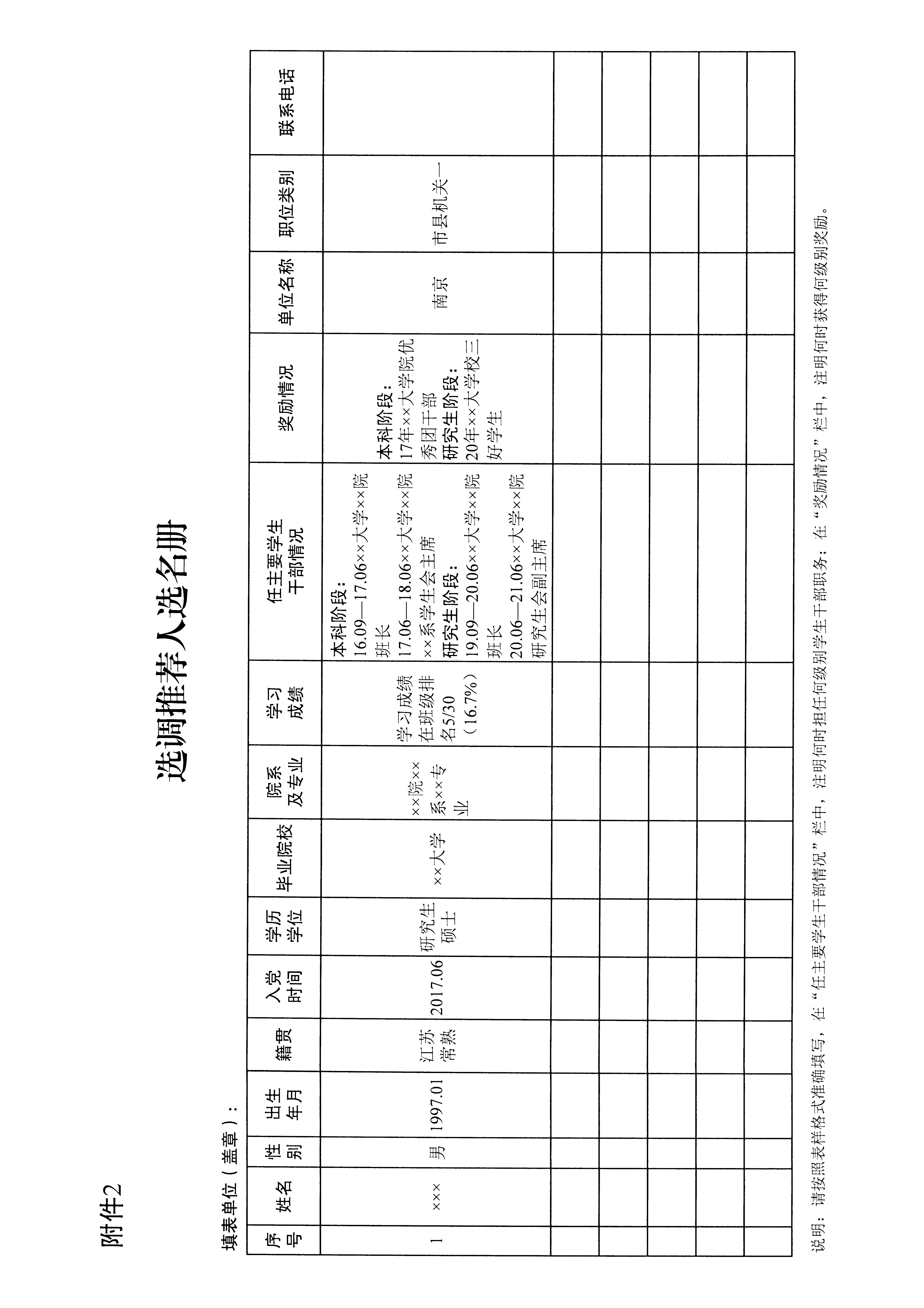 附件:選調推薦人選名冊