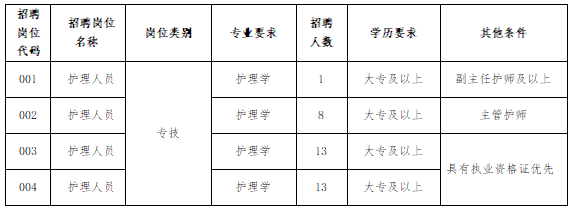 4.年齡在30周歲以下(1992年8月19日后出生),主管護師可放寬至35周歲以下(1987年8月19日后出生,第一學歷為全日制大專);副主任護師年齡可放寬至45周歲以下(1977年8月19日后出生)。