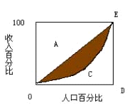 基尼系數G = M / (M+N)。其中,M表示陰影OAEC面積,N表示OCED面積。基尼系數值越小,即陰影面積越小,表明收入分配越平等;基尼系數越接近1,即陰影面積越大,表明收入分配不平等程度越大。