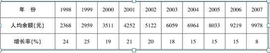 從1998年到2007年十年間,該地區年末人均人民幣儲蓄存款余額增速最快的年份是(         )