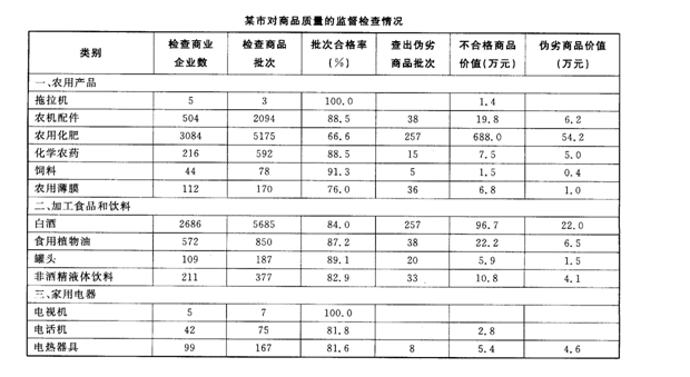 在所有商品中,偽劣商品批次占所檢查商品批次的比例最高的是哪種?(         )