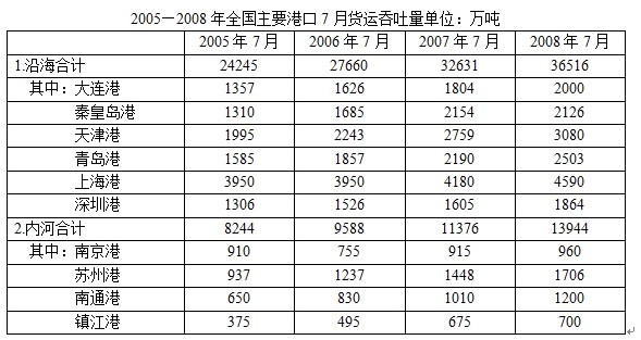 2006-2008年間,表中港口有幾個(gè)在7月出現(xiàn)過貨運(yùn)吞吐量比上年同期下降的局面?(          )