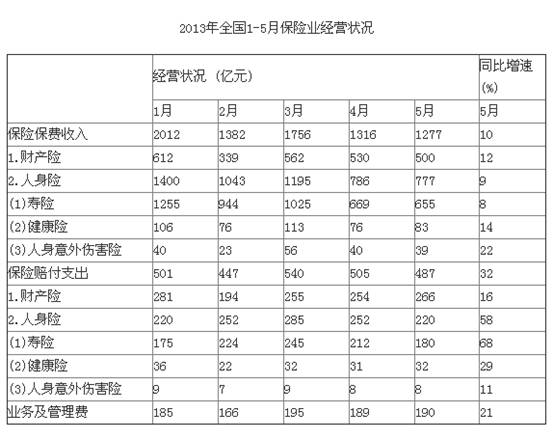 9.關于2013年1—5月保險業經營狀況,能夠從上述資料中推出的是: